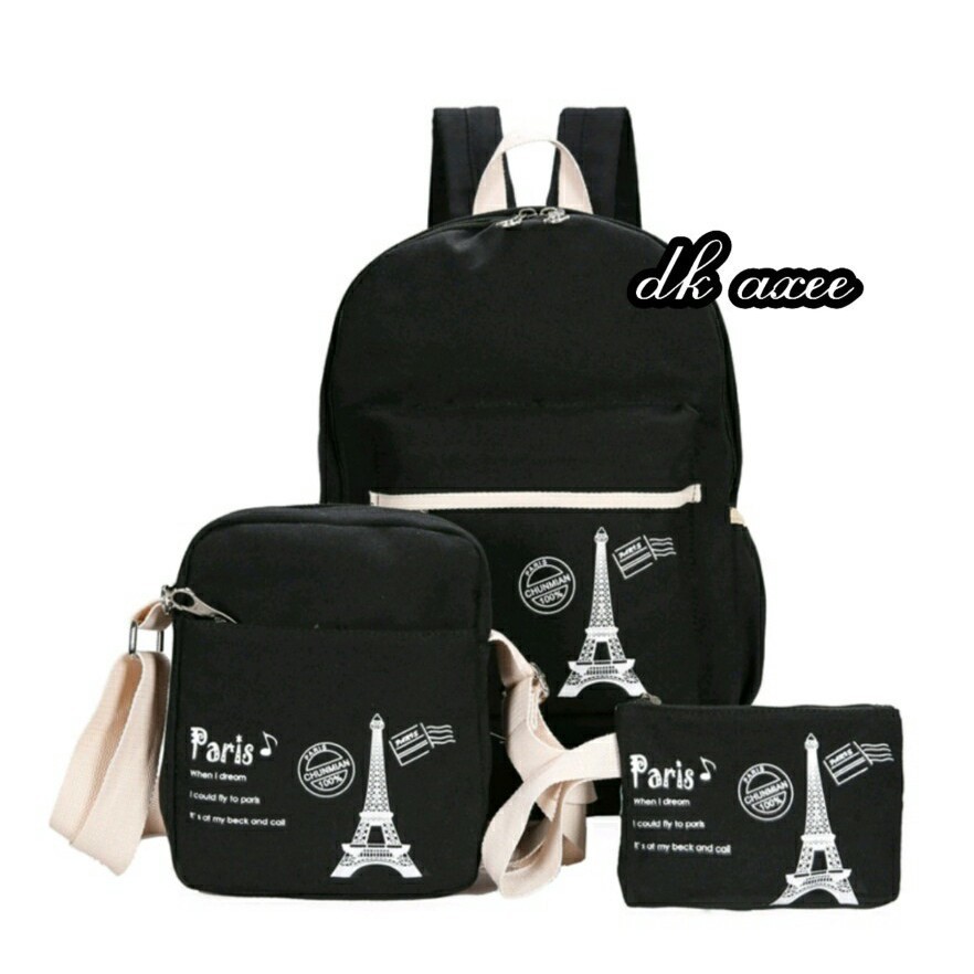 Langgan Tas Backpack Motif Corak 3in1 Paris Menara Eiffel Tower best quality | Shopee Indonesia