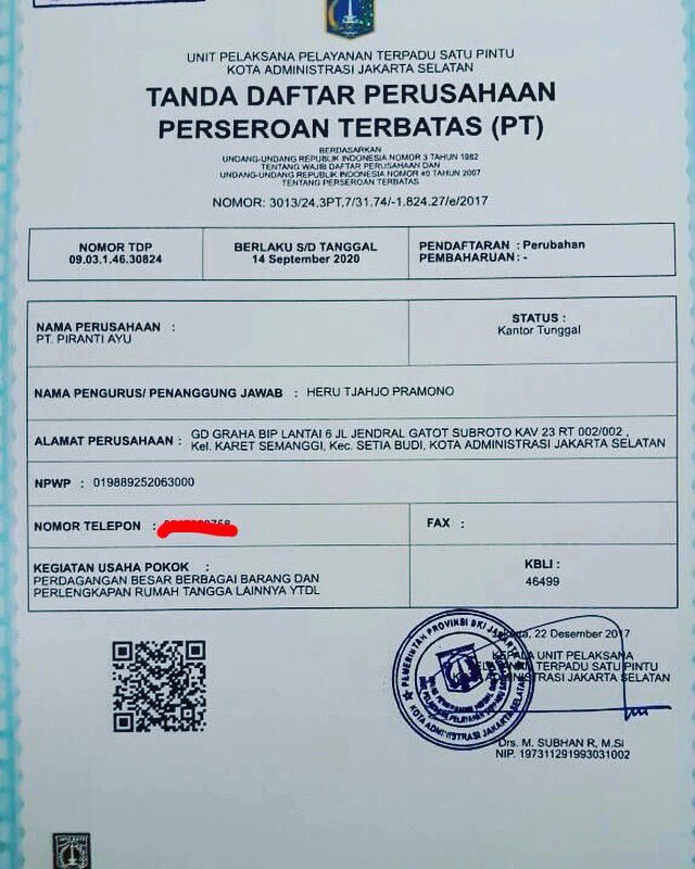 Konsultan Jakarta on Twitter: “Alhamdullillah Tanda Daftar Perusahaan ( TDP ) PT. PIRANTI AYU wilayah Jakarta selatan, sudah jadi. #jasa #birojasa #notaris #notarisppat #legal #izin #perizinan #owner #owners #manager #managers #