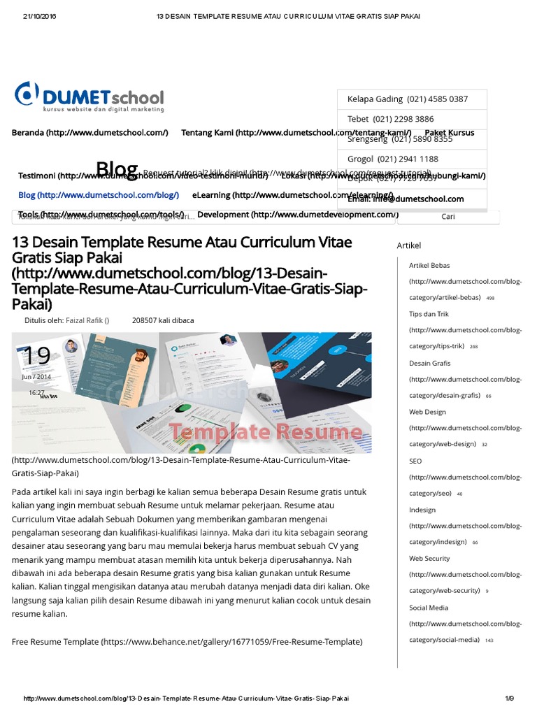 13 Desain Template Resume Atau Curriculum Vitae Gratis Siap Pakai