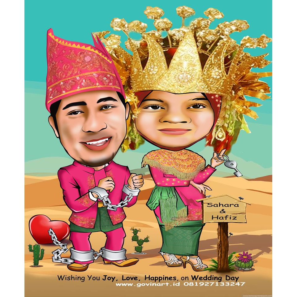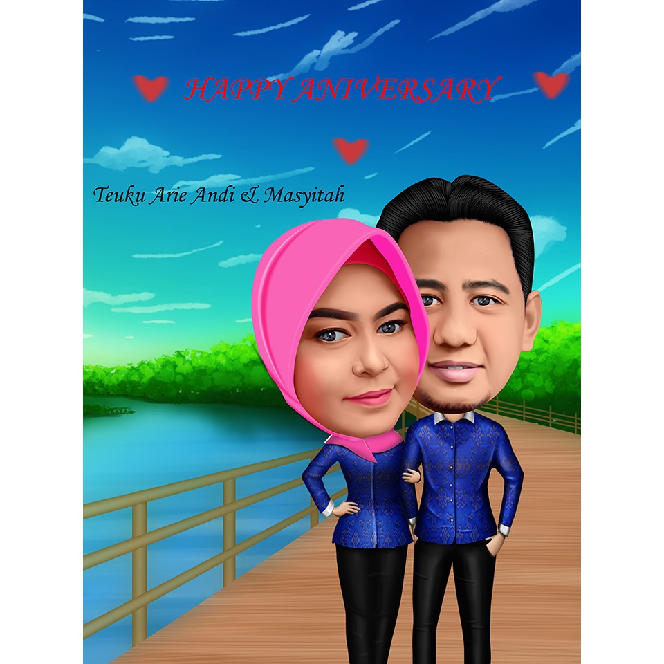 Kado unik pernikahan, karikatur wajah digital online | Shopee Indonesia