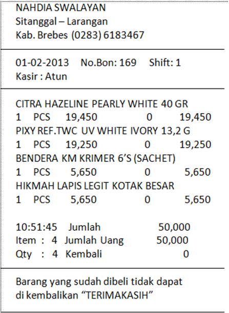 Desain Struk Salon lebih Elegan (kertas A5) > Accurate Accounting