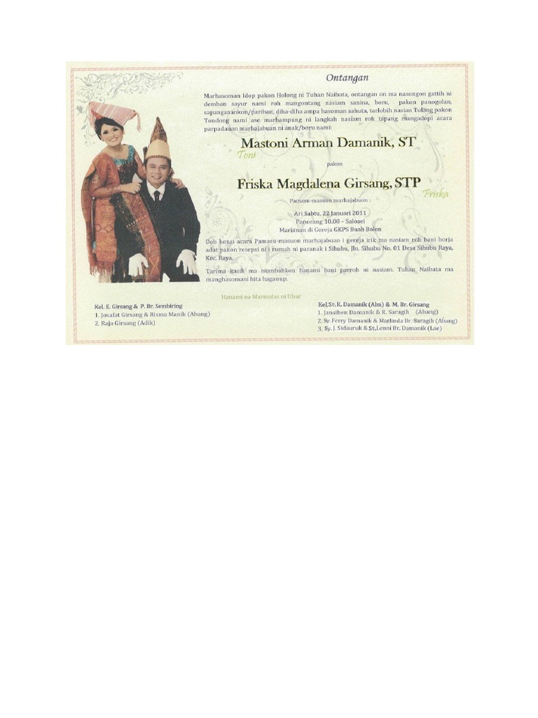 Download Desain Kartu Undangan Pernikahan Masyarakat Batak Toba | Kartu undangan pernikahan, Undangan perkawinan, Undangan pernikahan