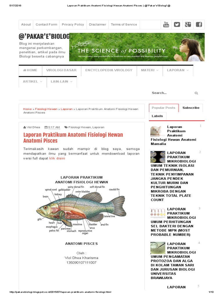 Laporan Praktikum Anatomi Fisiologi Hewan Anatomi Pisces _ @‘Pakar’e’Biologi’@