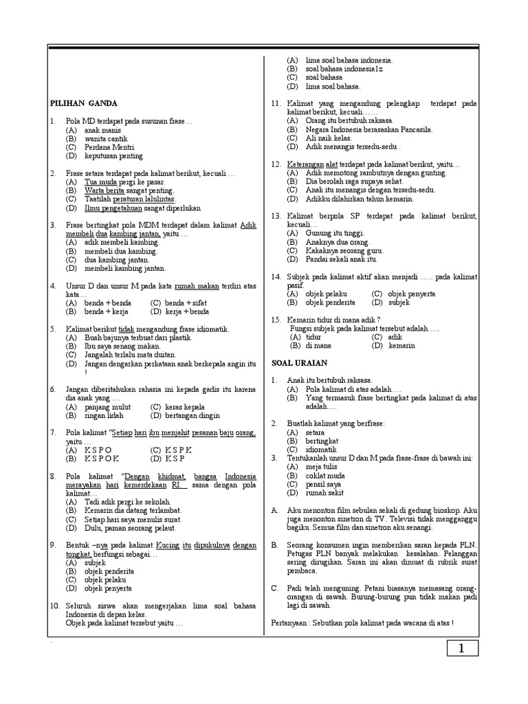 Lampiran 1 - ?· b. sinonim d. antonim . 4. Kalimat di bawah ini yang menggunakan kata berhomofon adalah… - [PDF Document]