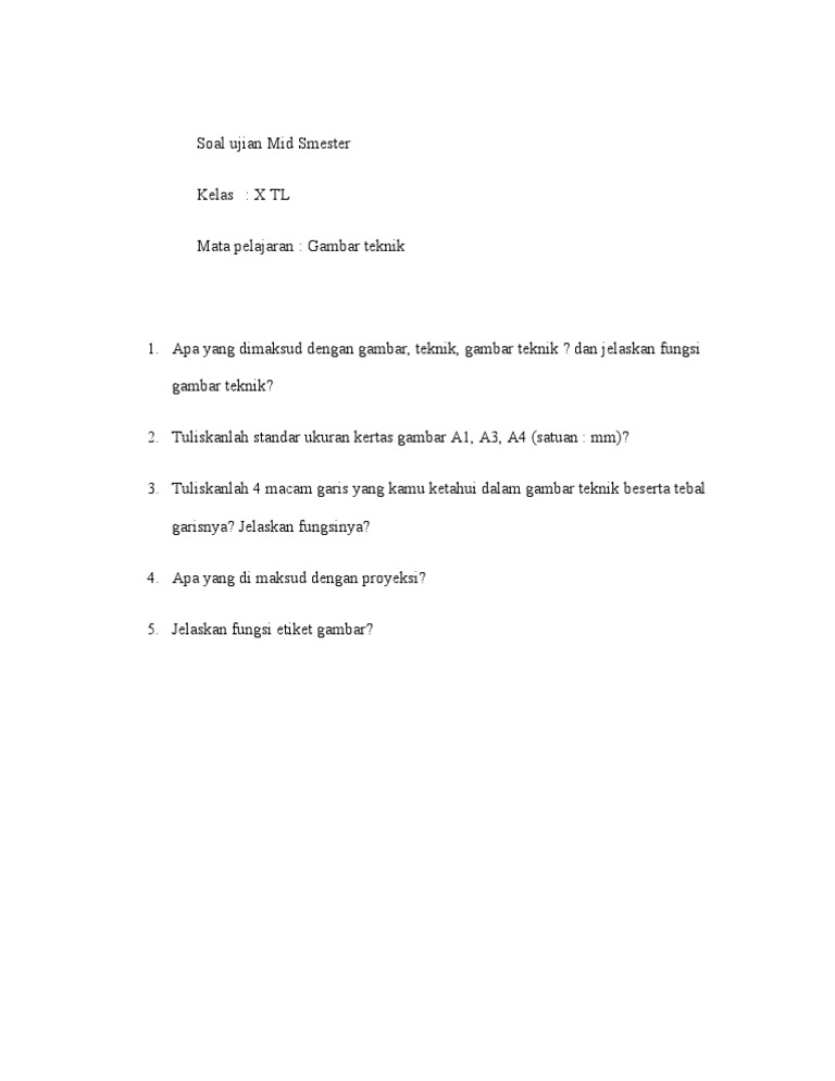 Soal Ujian Mid Smester X TL