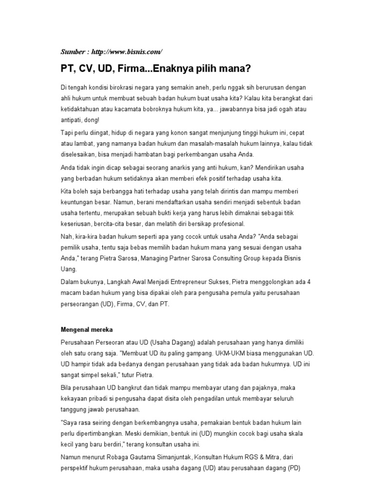 DOC) PERBEDAAN PT, PP, CV, dan Firma | Nanda Dwi Haryanto - Academia.edu
