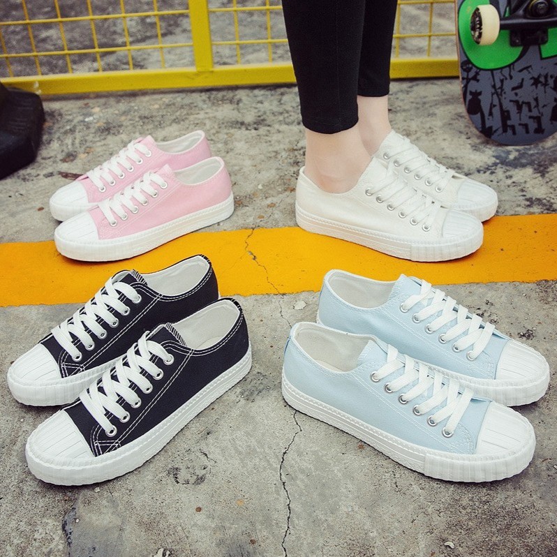 Sepatu Sneakers Flat Model Low Top Bahan Kanvas | Shopee Indonesia