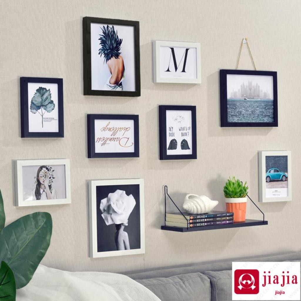 9 bingkai dengan rak, Foto ruang tamu, Bingkai foto, Kombinasi dinding kamar tidur dekorasi rumah kreatif foto dinding, Mengirim inti lukisan | Shopee Indonesia