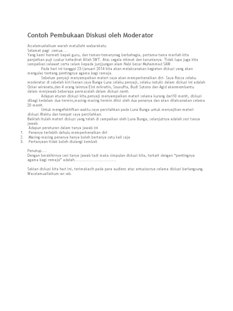 Contoh Pembukaan Diskusi Oleh Moderator