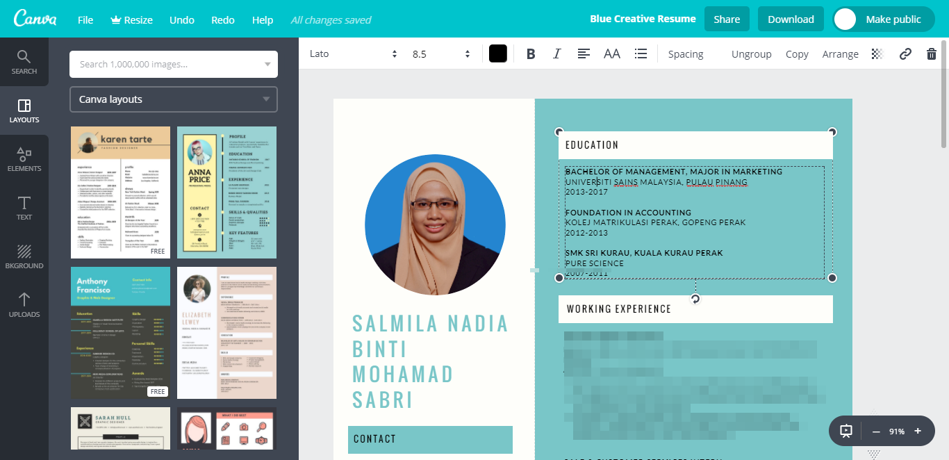Blog Cik Miela: Edit Resume dengan Canva