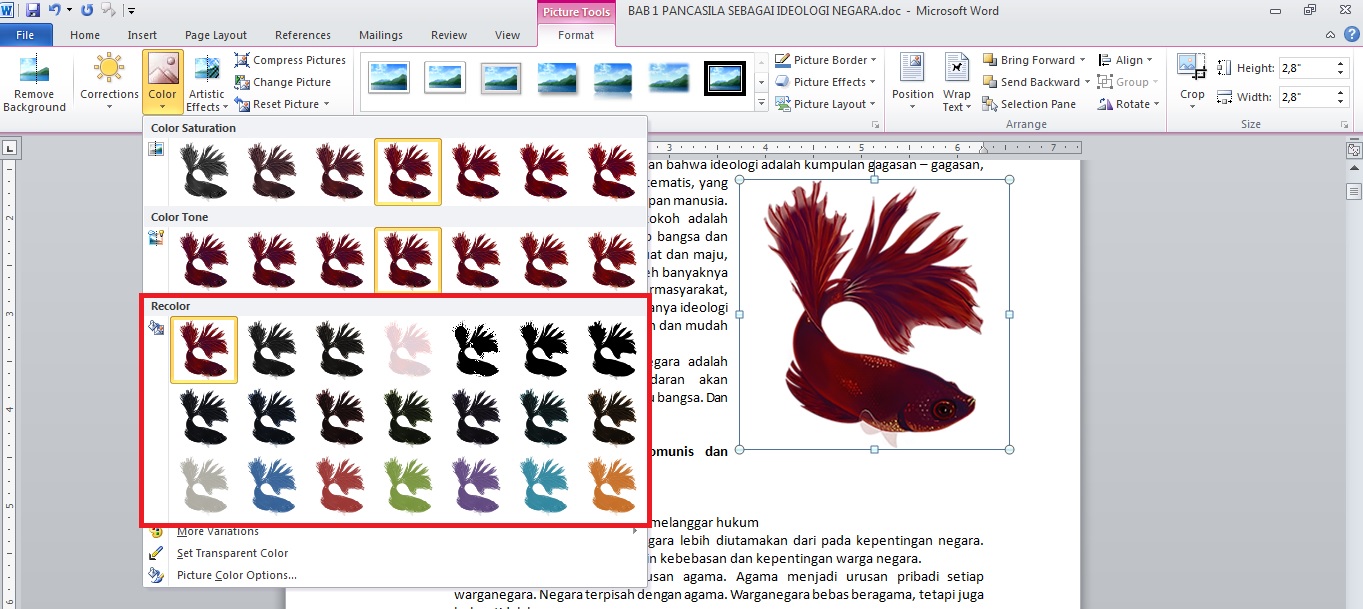 Memberi warna ulang pada gambar (Recolor) di Ms Word - Teknologi Informasi