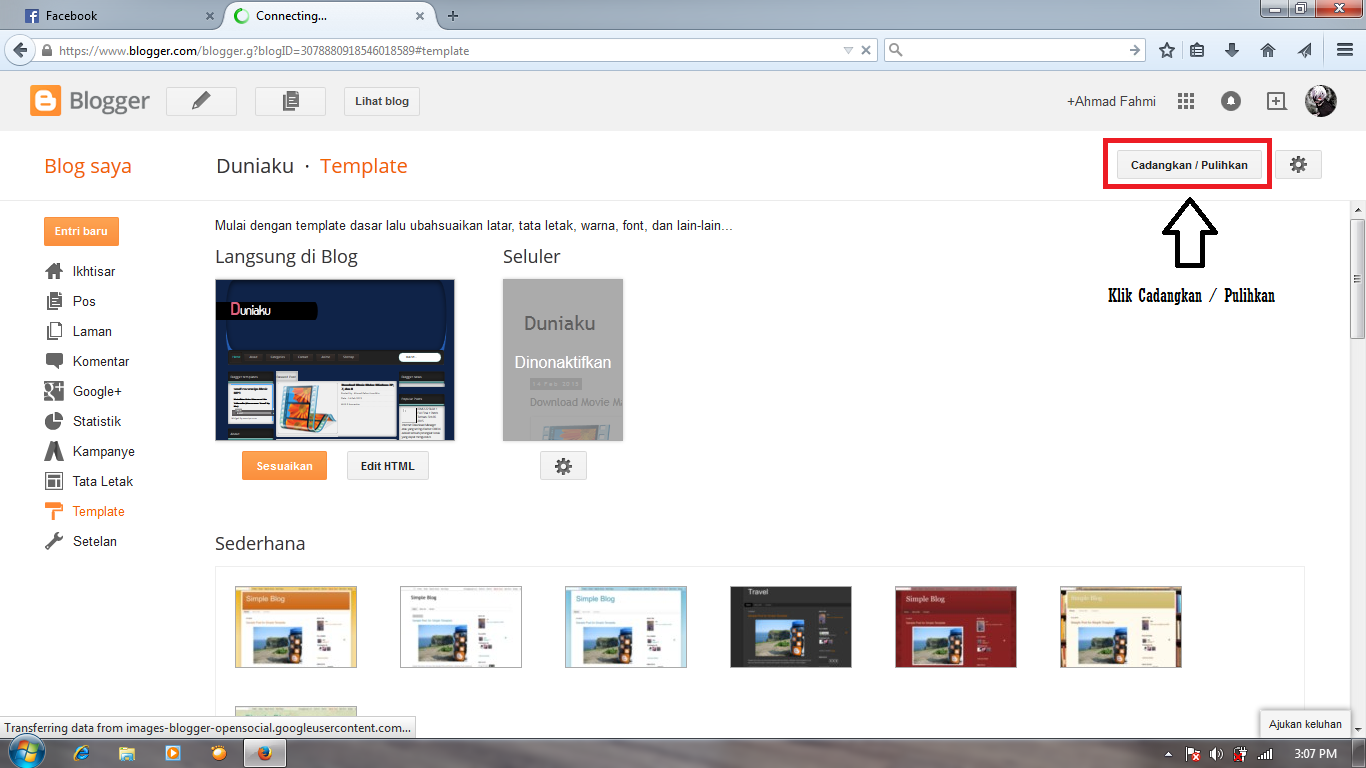 Belajar blogger untuk pemula: Cara Unggah (upload) Template pada blogger