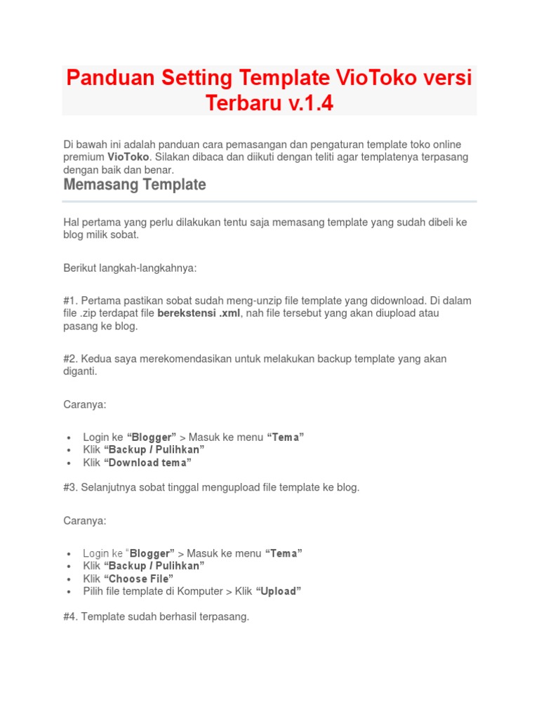 Panduan Setting Template VioToko Versi 1
