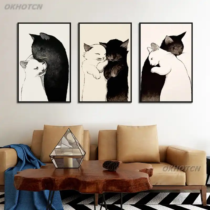 Nordic Style Warm Black And White Cat Canvas Painting Creative Modular Poster And Print Wall Art Living Room Home Decor No Frame| | - AliExpress