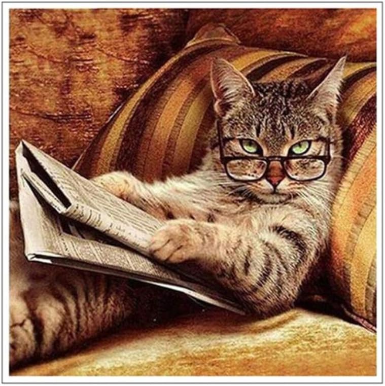Amazon.com: XIANGPEIFBH Granny Cat Canvas Painting Cat with Glasses Reading The Newspaper Wall Art Poster for Living Room Home Decoration-50x50cm No Frame: Posters & Prints