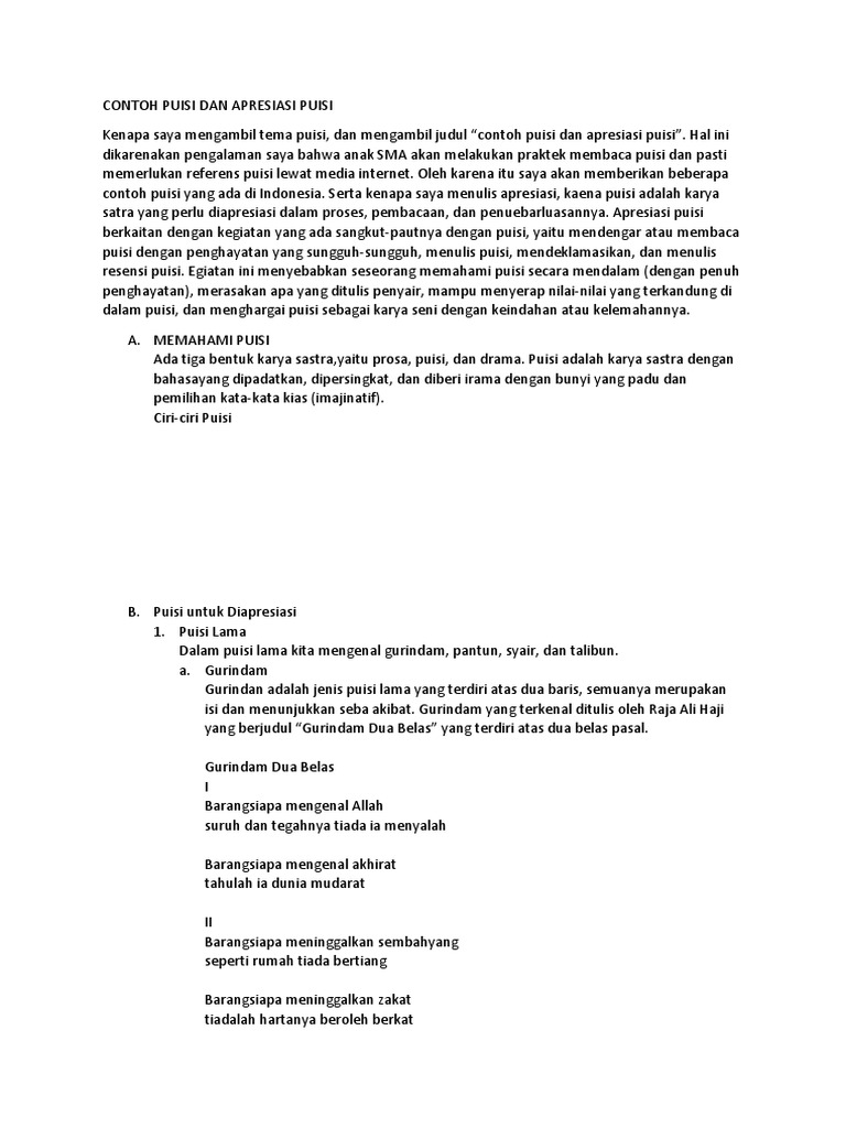 Contoh Puisi Dan Apresiasi Puisi
