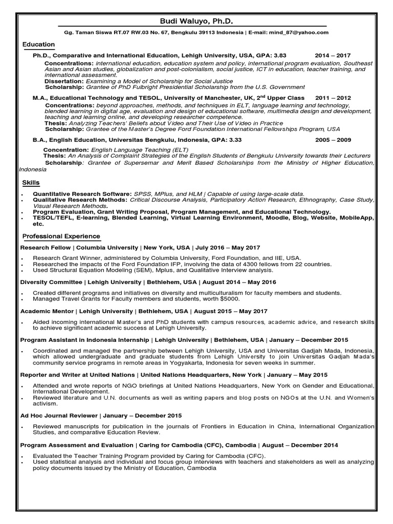 Contoh curriculum vitae lengkap bahasa inggris. akparpertiwi.ac.id - Best Contoh curriculum vitae lengkap bahasa … | Education resume, Curriculum vitae, Good essay