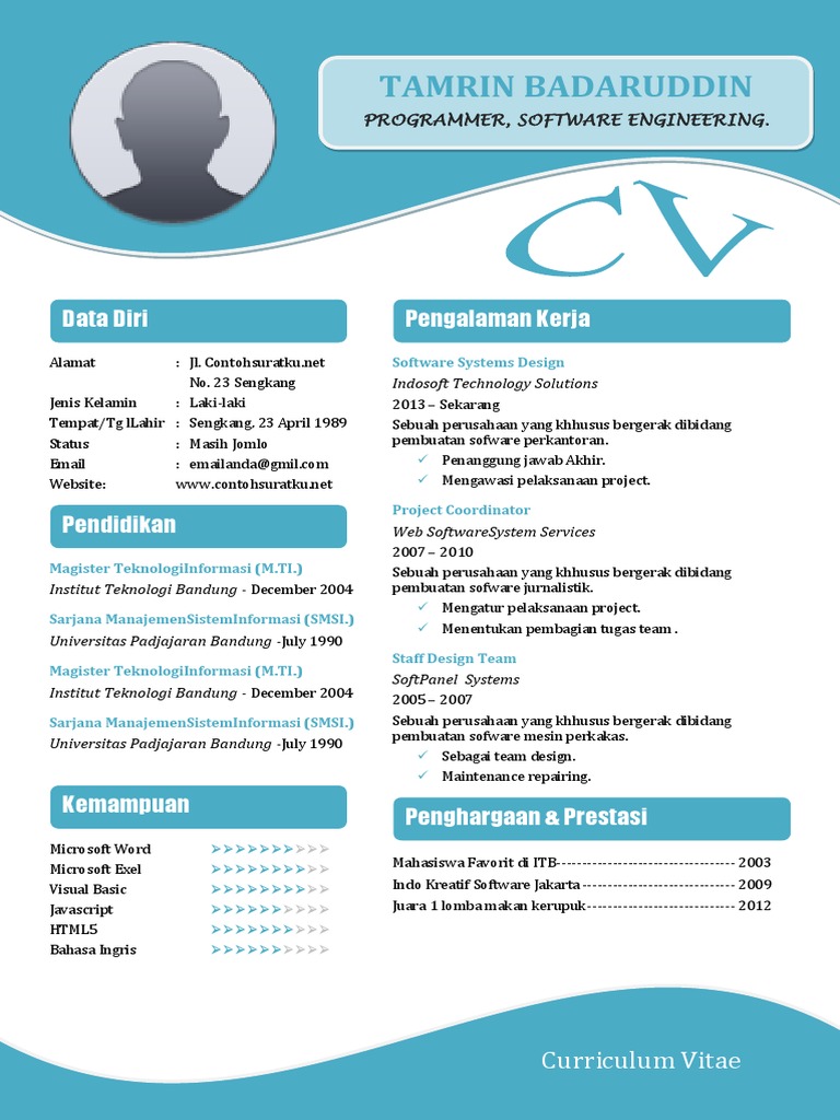 Download Contoh CV Siap Pakai yang Keren - PAKAR TUTORIAL