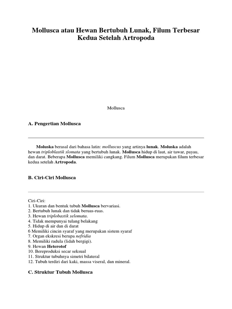 Ciri-Ciri Hewan Mollusca Terlengkap Beserta Penjelasannya - DosenBiologi.com
