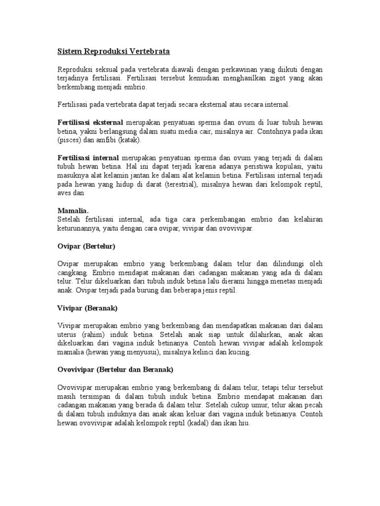 DOC) Sistem Reproduksi Vertebrata | Mohammad Mulyadi Prasetyo M Mhul - Academia.edu
