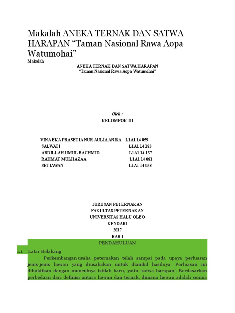 MAKALAH SATWA HARAPAN