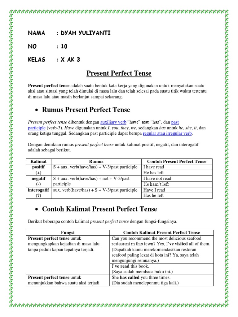 Pengertian Present Perfect Tense, Macam, Rumus, Fungsi dan Contoh Kalimat - RUMUSPELAJARAN.COM