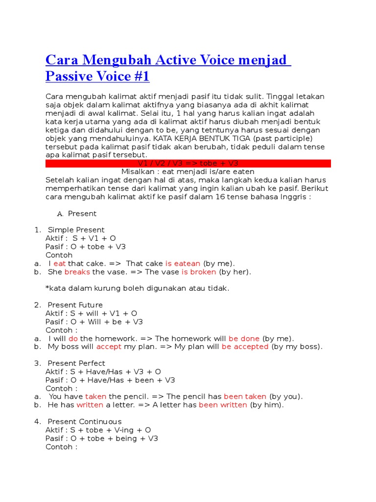 Contoh Kalimat Active Voice Diubah Ke Passive Voice