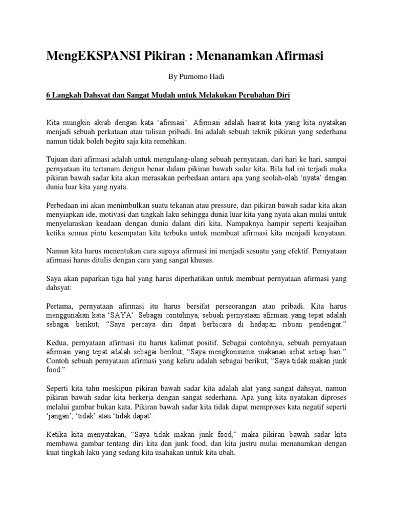 Pengertian Afirmasi - cara menarik rezeki