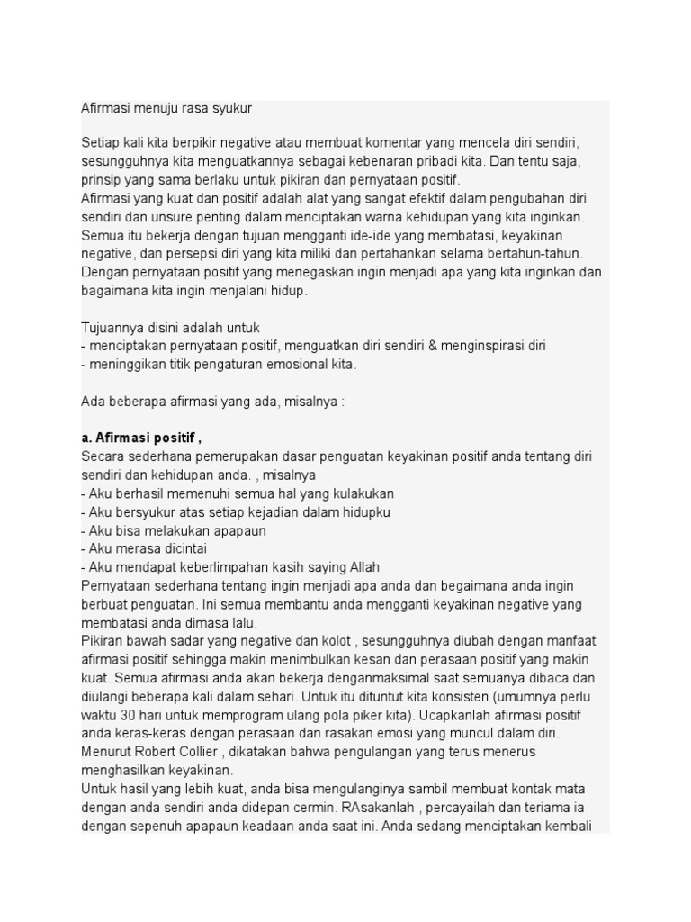 Afirmasi Menuju Rasa Syukur