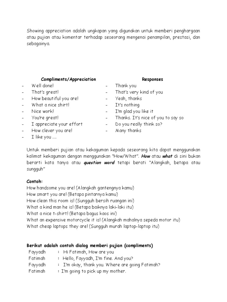 40 Contoh Dialog Bahasa Inggris Compliment dan Artinya | English Admin