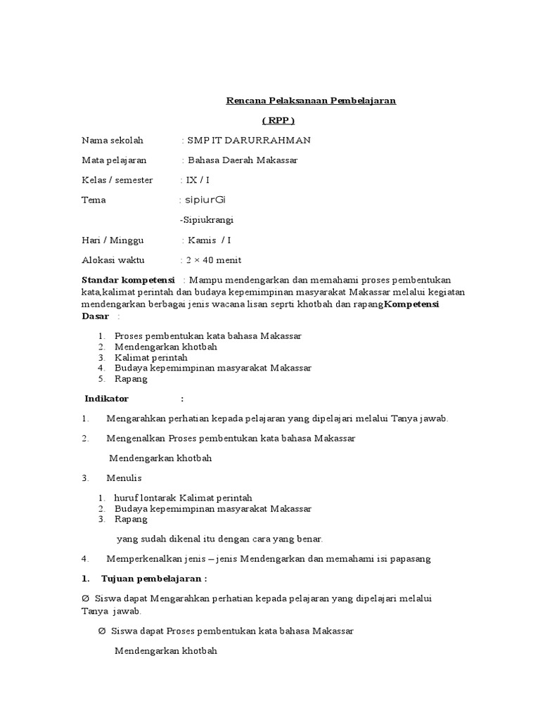 Rpp Bhs Daerah Kls 9 2016