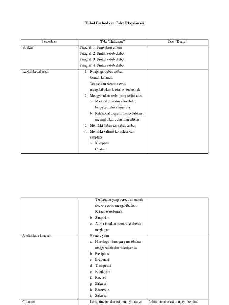 Tabel Perbedaan Teks Eksplanasi