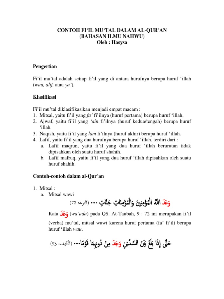 Fi’il Shohih dan Fi’il Mu’tal Beserta Pembagiannya (Fi’il Shohih: Salim, Mahmuz, Mudho’af, dan Fi’il Mu’tal: Mitsal, Ajwaf, Naqish, Lafiif) | Arabunaa (Belajar Bahasa Arab Online)