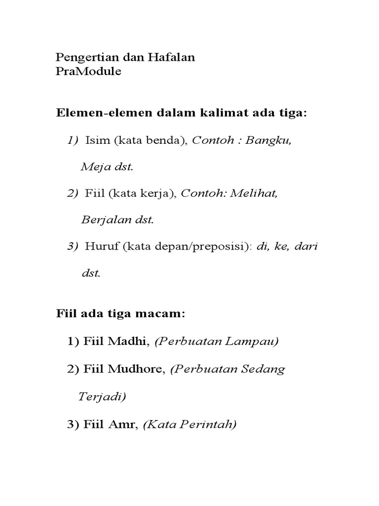 Tuliskan 10 macam jumlah mufidah yang melalui dengan fiil madhi? - Brainly .co.id