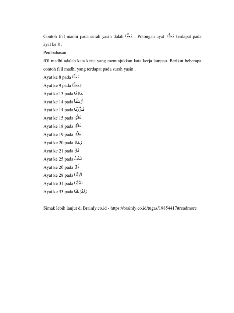 Contoh Fiil Madhi Qs. Yasin