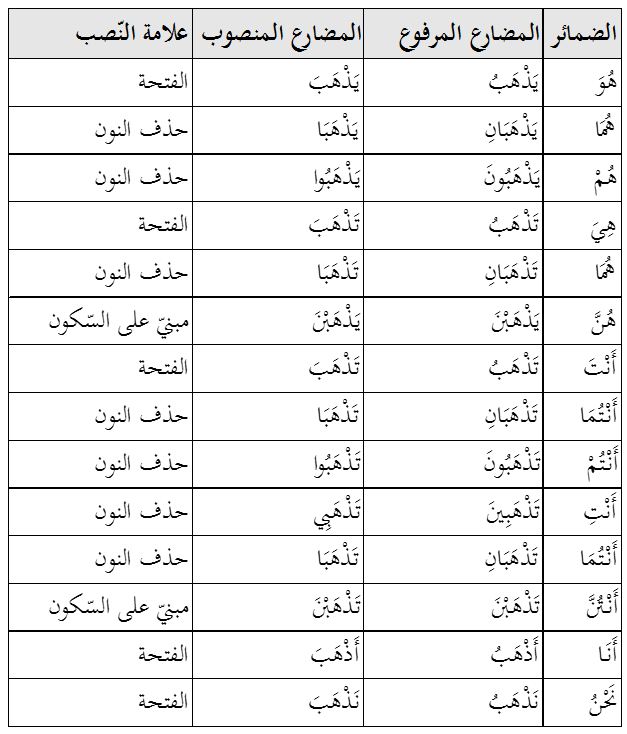 Contoh Huruf Nashab Fi’il Mudhaari’ - Pelajaran 17 Durusul Lughah 2