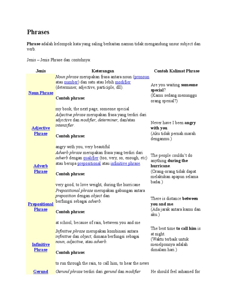 Phrase - Jenis Contoh beserta Penjelasannya - InggrisPRO