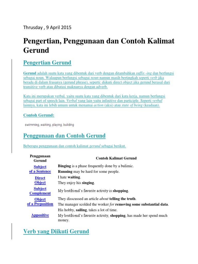 Gerund (Verb ing) | Arti Macam Fungsi dan Contoh ~ Dunia Bahasa Inggris