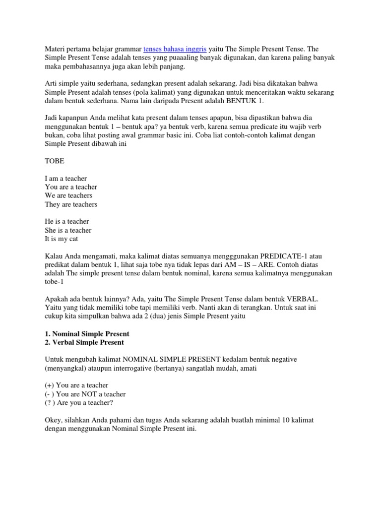 Contoh Kalimat Verbal dan Nominal Simple Present Tense | Belajar, Bahasa, Bahasa inggris