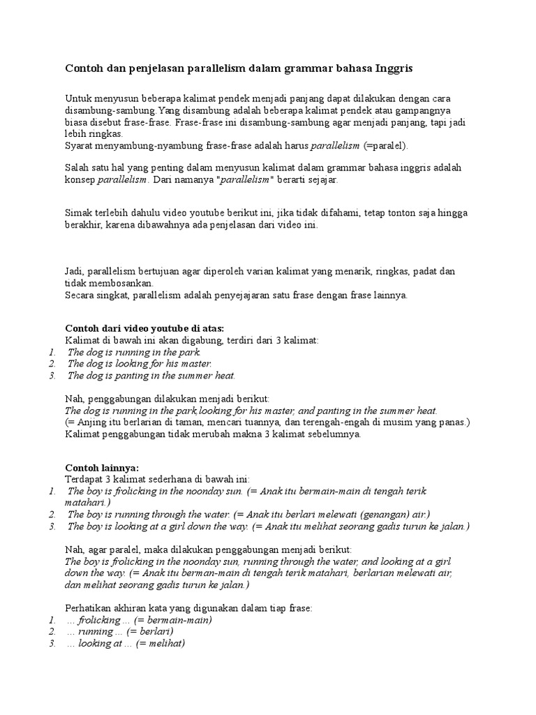 Contoh Dan Penjelasan Parallelism Dalam Grammar Bahasa Inggris
