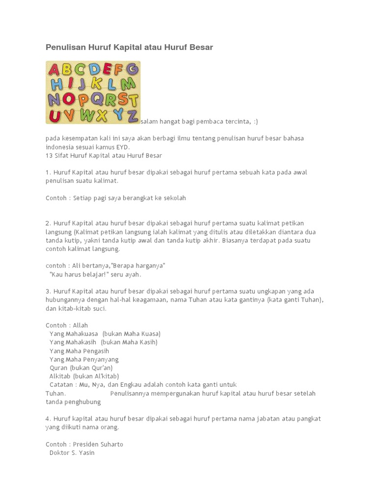 14 Pedoman Penggunaan Huruf Kapital Disertai Contoh - pembelajar.net