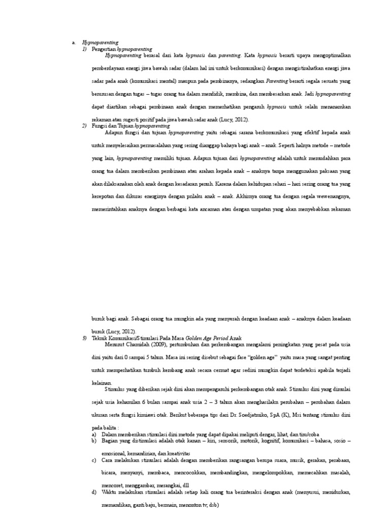 PENERAPAN HYPNOPARENTING SEBAGAI SALAH SATU METODE MENDIDIK ANAK Ana Yuliana PLS UM PENDAHULUAN Yang melatar belakangi penulisan