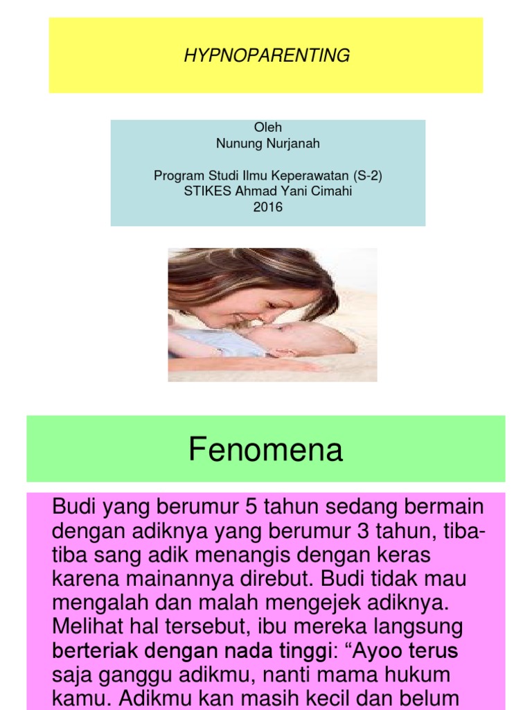 Hypnoparenting: Oleh Nunung Nurjanah Program Studi Ilmu Keperawatan (S-2) STIKES Ahmad Yani Cimahi 2016