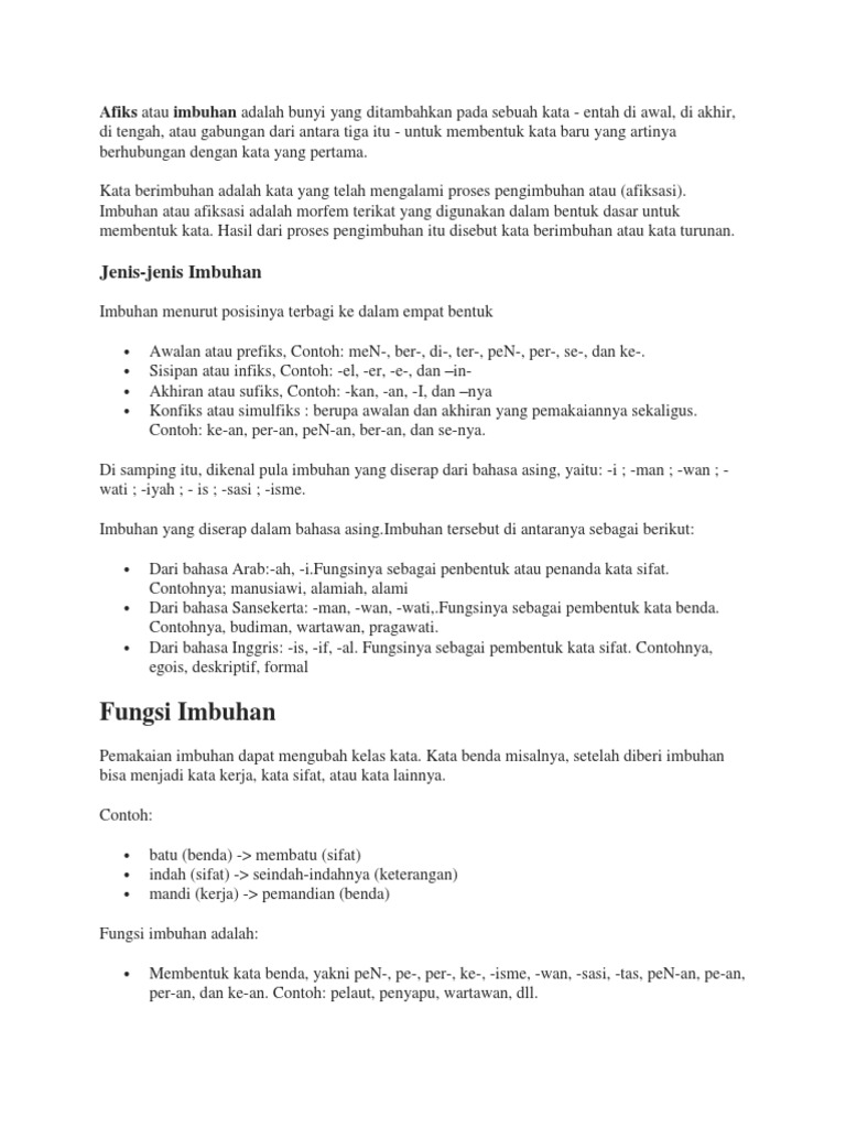 Kata Imbuhan Dalam Bahasa Indonesia