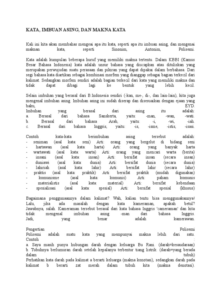 Contoh Kalimat Imbuhan Asing I Wi Iah - Barisan Contoh