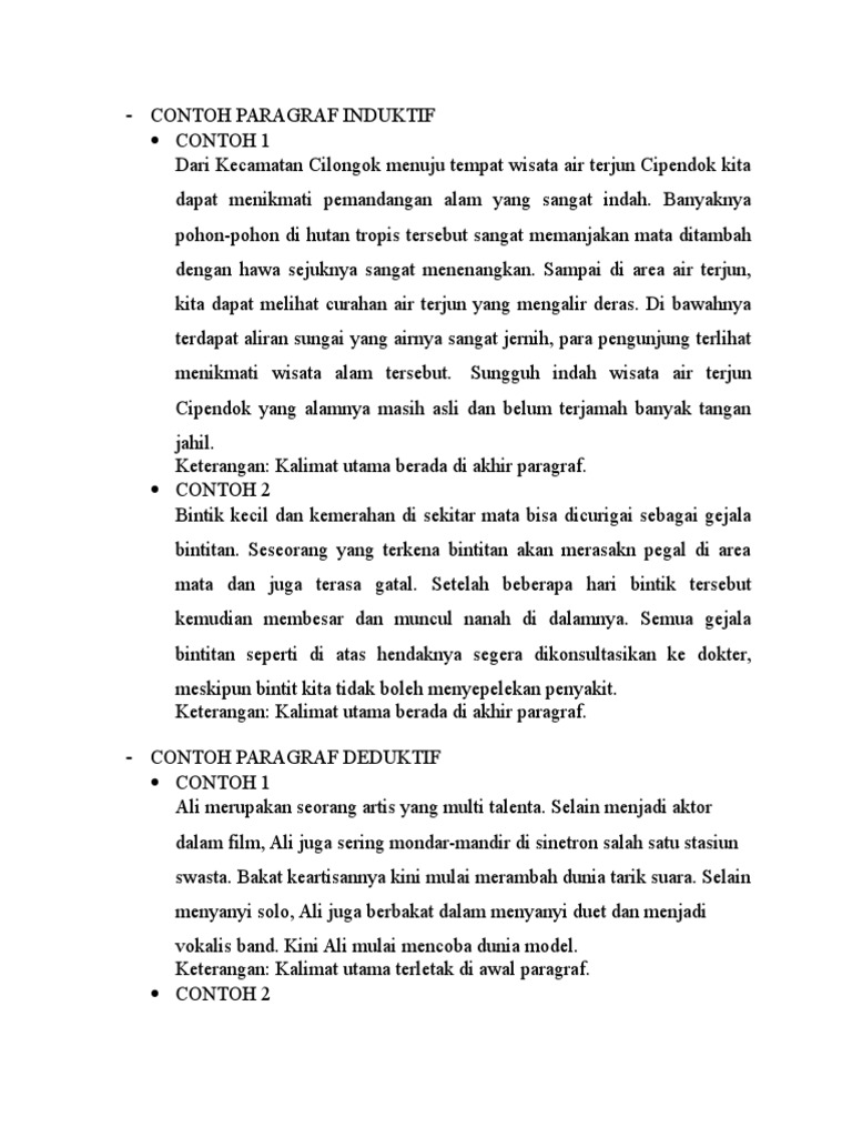 DOC) KUMPULAN CONTOH PARAGRAF DEDUKTIF, INDUKTIF DAN CAMPURAN | Sahrul Parawie - Academia.edu