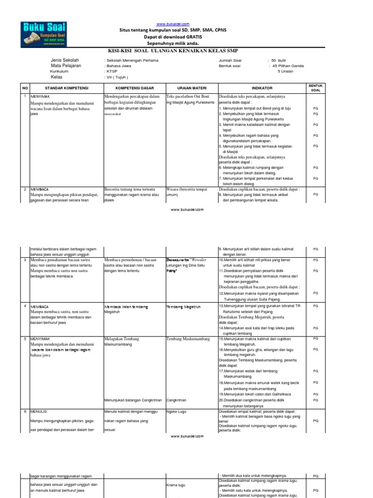 5. Kisi-kisi Ulangan Kenaikan Kelas Bhs Jawa Kelas Vii Smp