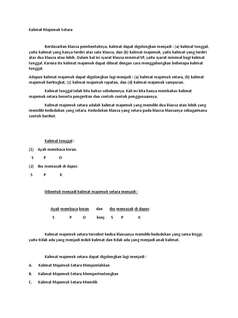 Contoh Kalimat Majemuk Setara Beserta Pola Spok – Cute766