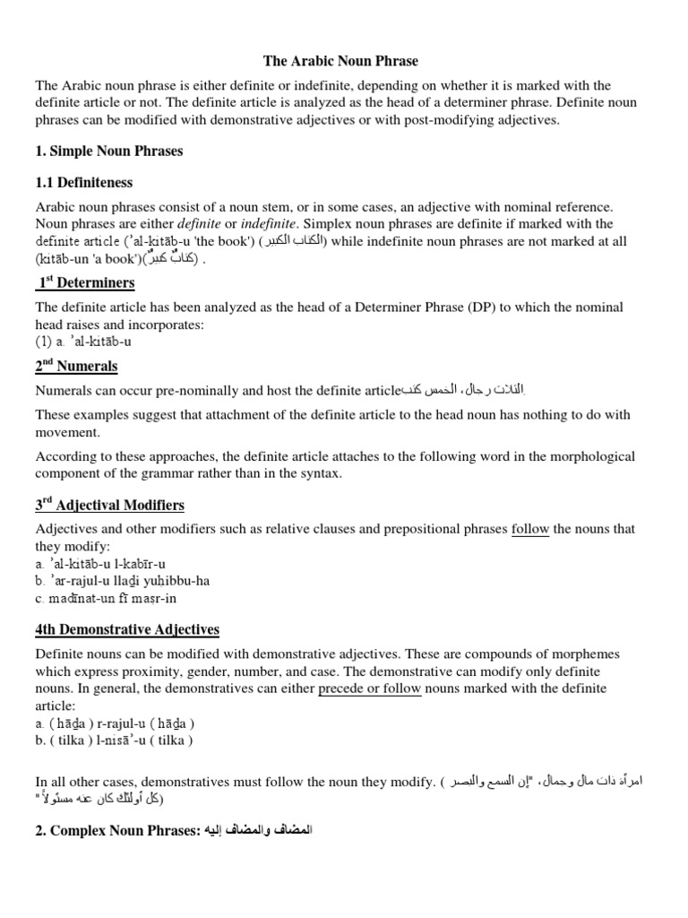 The Arabic Noun Phrase Fair Copy | Adjective | Phrase