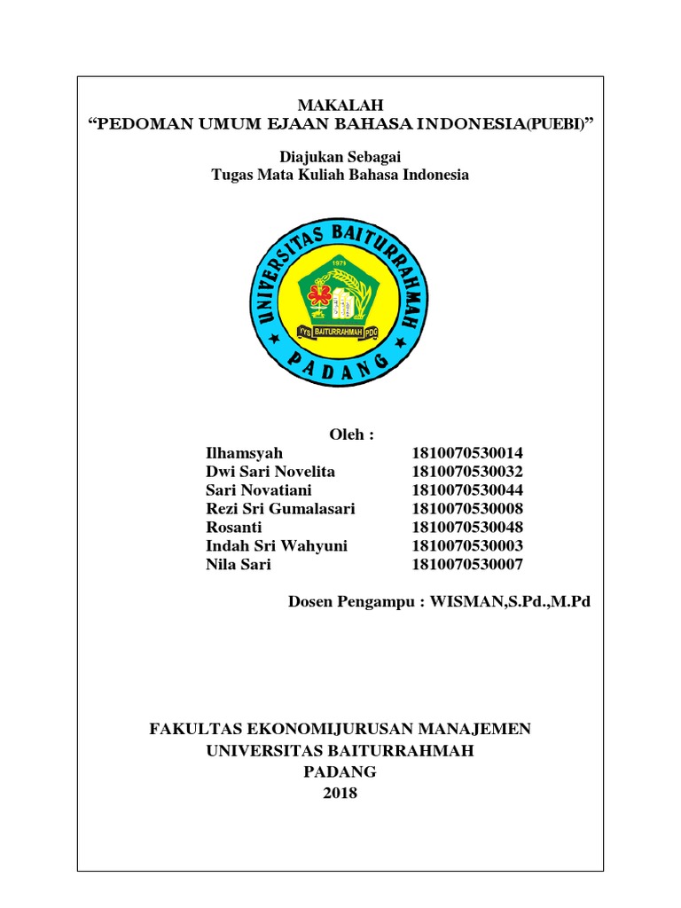 Makalah Pedoman Umum Ejaan Bahasa Indonesia (PUEBI)